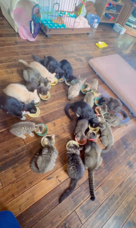 365日休むことなく、朔んが中心となり、ベルソーデシャトンズのチーム(チームの基本メンバーは朔さんのご家族)の方々が猫のお世話をしています。