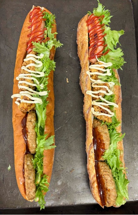 上記写真左:ミートパイラージ・3600円、右側:BIGこっぺドッグ・1900円、