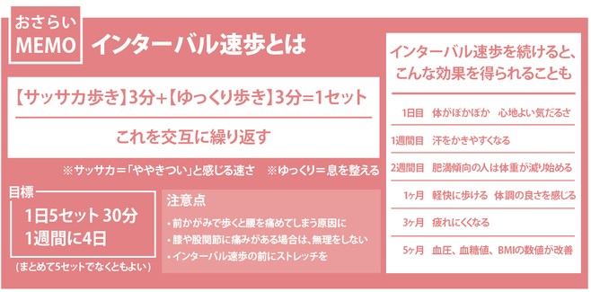 私も気づいたときに自分のペースで『インターバル速歩』を実践してみたいと思います!